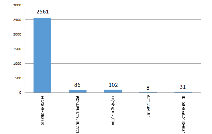 第三部分药品监督管理一、药品行政受理情况(一)省局行政受理事项受理情况2018年二季度,省局受理药品补充审批申请65件,其中中药天然药物39件,化学药品26件;再注册申请35件,其中中药天然药物16件,化学药品18件,生物制品1件。 (二)药品生产企业日常监管情况2018年二季度,全省共检查生产企业764家次,其中基本药物生产企业353家次,血液制品、注射剂等高风险品种生产企业70家次。出动检查人员2561人次,发现违法违规生产企业86家次,责令整改生产企业102家次,收回GMP证书8张,移交稽查部门立案查处31家。详见附表6。