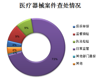 图5-3-12018年二季度全省AG真人娱乐娱乐案件来源分布图 四、AG真人娱乐娱乐日常监管情况(一)AG真人娱乐娱乐生产日常监管情况2018年二季度,全省各级食品药品监管机构检查AG真人娱乐娱乐生产企业280家次,其中生产一类AG真人娱乐娱乐产品的生产企业87家次,其中未通过检查2家,未通过率2.3%;生产二类AG真人娱乐娱乐产品的生产企业160家次,其中未通过检查2家,未通过率1.25%;生产三类AG真人娱乐娱乐产品的生产企业52家次,其中未通过检查4家,未通过率7.7%;检查国家重点监管企业35家次,省重点监管企业63家次。全面检查高风险企业,含无菌AG真人娱乐娱乐的生产企业49家,其中未通过检查4家,未通过率8.2%;含植入性AG真人娱乐娱乐的生产企业7家,未通过检查1家,未通过率14.3%;第三类AG真人娱乐娱乐的生产企业35家,未通过检查2家,未通过率5.7%。存在违法违规的生产企业17家次,完成整改的生产企业28家次,移交稽查部门的生产企业5家次。详见附表13。 (二)AG真人娱乐娱乐经营、使用日常监管情况2018年二季度,全省各级食品药品监管机构检查经营企业、使用单位家次20206家次,其中经营企业8849家次,使用单位11357家次。省级及以下组织AG真人娱乐娱乐经营企业飞行检查101家次。存在违规行为的企业或单位1039家次,其中经营企业559家次,使用单位480家次。完成整改的企业或单位1303家次,其中经营企业816家次,使用单位487家次。移交稽查部门立案查处180家,其中经营企业59家,使用单位121家,移交卫生部门处理的单位26家。详见附表14。 五、地方AG真人娱乐娱乐抽验情况2018年二季度,全省AG真人娱乐娱乐抽验主体26家,抽验28批次,无检验不合格。按器械类别分,一类抽检0批次,二类抽验12批次,三类抽验16批次。按抽验部门分,生产部门抽验1批次,经营部门抽验21批次,使用部门抽验6批次。详见附表15。 六、AG真人娱乐娱乐投诉举报情况2018年二季度,全省共受理AG真人娱乐娱乐投诉举报142件(同比减少20.2%),占投诉举报总量(食品、保健食品、药品、AG真人娱乐娱乐、化妆品)的1.2%。立案13件,结案12件。详见附表16。